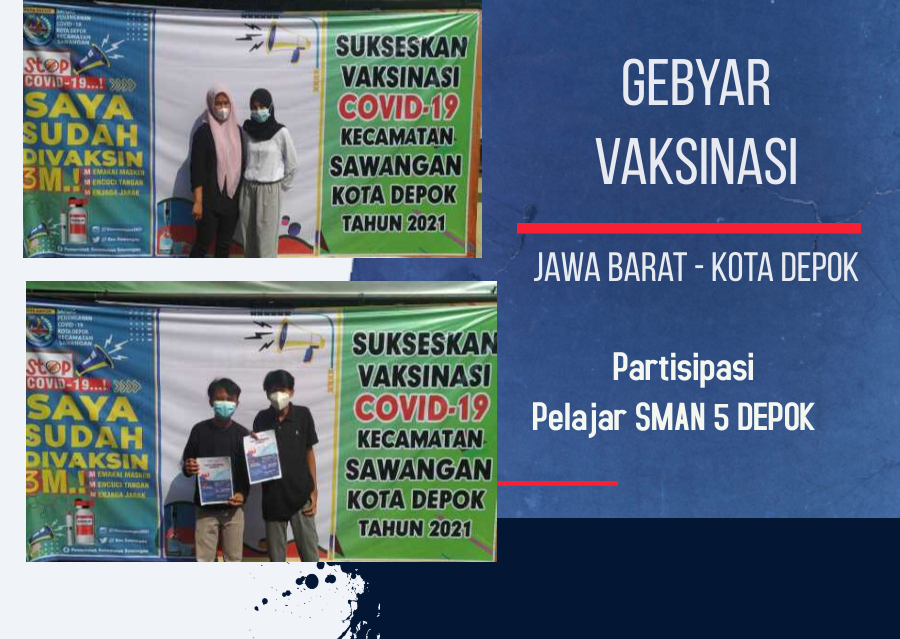 Sasaran vaksinasi tidak hanya berlaku pada masyarakat berusia dewasa saja melainkan para pelajar yang berusia 12-17 tahun. Dalam rangka mensukseskan Program Vaksinasi Pemerintah Jawa Barat, SMAN 5 Depok pun berkerja sama dengan Puskesmas Kecamatan Sawangan untuk mengajak pelajar-pelajar sekolah menengah atas atau sederajat di Kota Depok khususnya di Kecamatan Sawangan untuk mengikuti kegiatan vaksinasi.Jenis vaksin yang didapatkan para pelajar yaitu Vaksin Pfizer. Kegiatan Vaksinasi di kalangan pelajar ini pun disambut baik oleh para siswa dan orang tua siswa karena kegiatan ini memudahkan siswa dalam mendapatkan vaksin. Hal ini terlihat dari antusiasme para siswa SMAN 5 Depok yang mengikuti kegiatan vaksinasi ini. SMAN 5 Depok tidak hanya menkoordinir dari para siswa SMAN 5 Depok melainkan pelajar-pelajar dari sekolah lain yang masih berada di Kecamatan Sawangan.