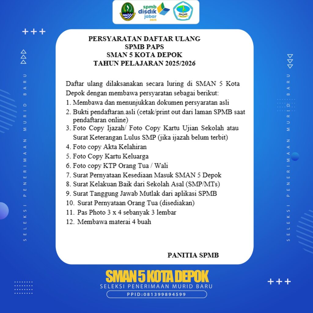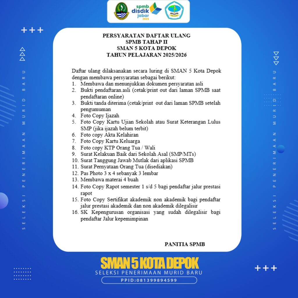 SYARAT PENDAFTARAN SMAN 5 KOTA DEPOK KELAS TERBUKA